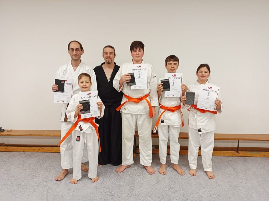 Nach hartem Training sind die vier aus dem Jugendbereich nun glücklich ihre nächste Graduierung – den Orangegurt – erreicht zu haben. Auch im erwachsenen Bereich fand eine Prüfung statt; hier wurde der 2. Kyu abgelegt. Wir gratulieren allen Prüflingen ganz herzlich und hoffe, dass sie dieses hohe Leistungsniveau aufrechterhalten!